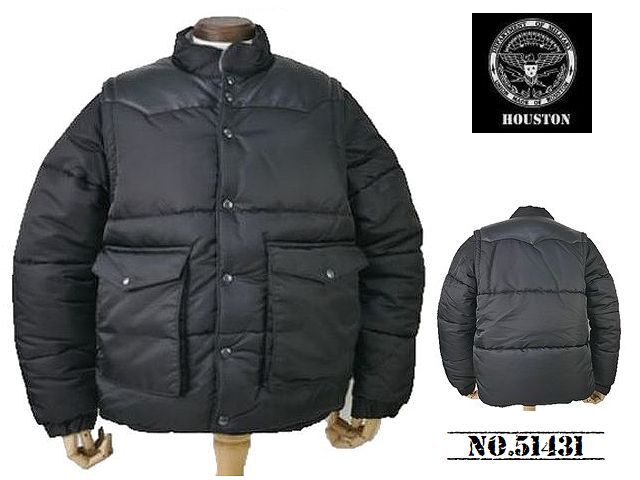 > 【送料無料 39%OFF】HOUSTON ヒューストン ヘビーナイロン 2ウェイ パディングジャケット NO51431 BLACK_Mサイズ