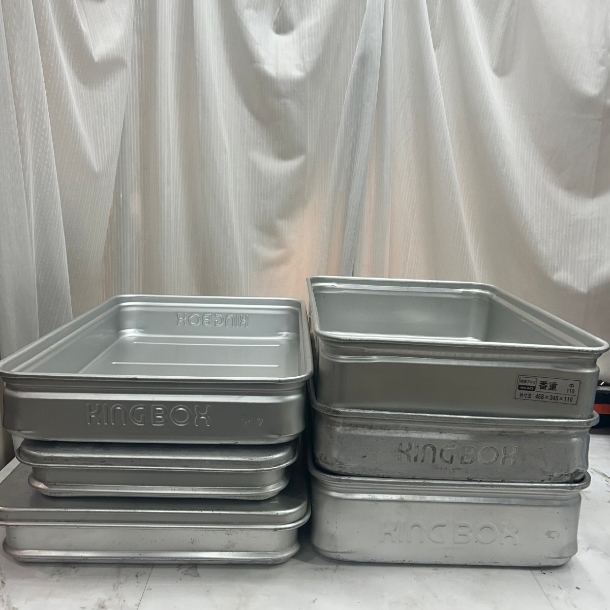 - &OG& アルミ 番重 バット 6点セット サイズバラバラ KINGBOX 蓋2個 トレー フードコンテナ 業務用 厨房 中古品 &H-250950