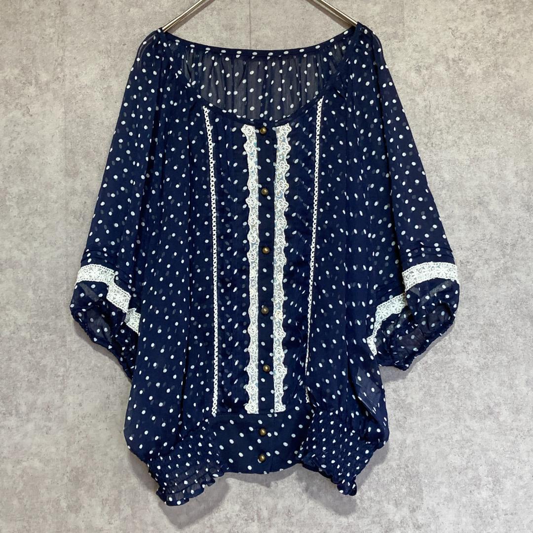 - 【美品】パハリート(M)シフォン五分袖ブラウス*ドット柄*総柄*Uネックレース*