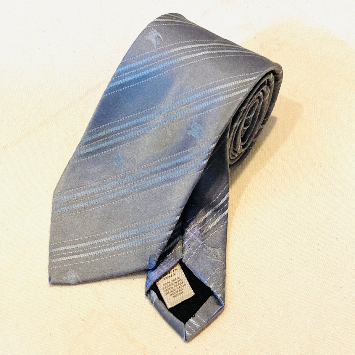 > BURBERRY LONDON バーバリー イタリア製 絹 シルク SILK 100% 高級 ネクタイ シルバー系 ストライプ ロゴ デザイン