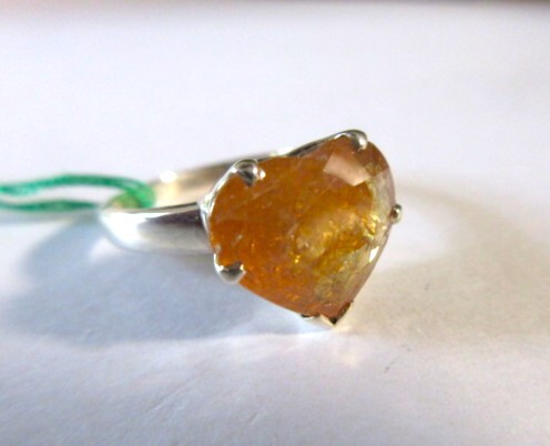 飴色のハート形サファイアです。インクルージョンがありますが、透明感とテリがあります。非加熱。6.2ct。