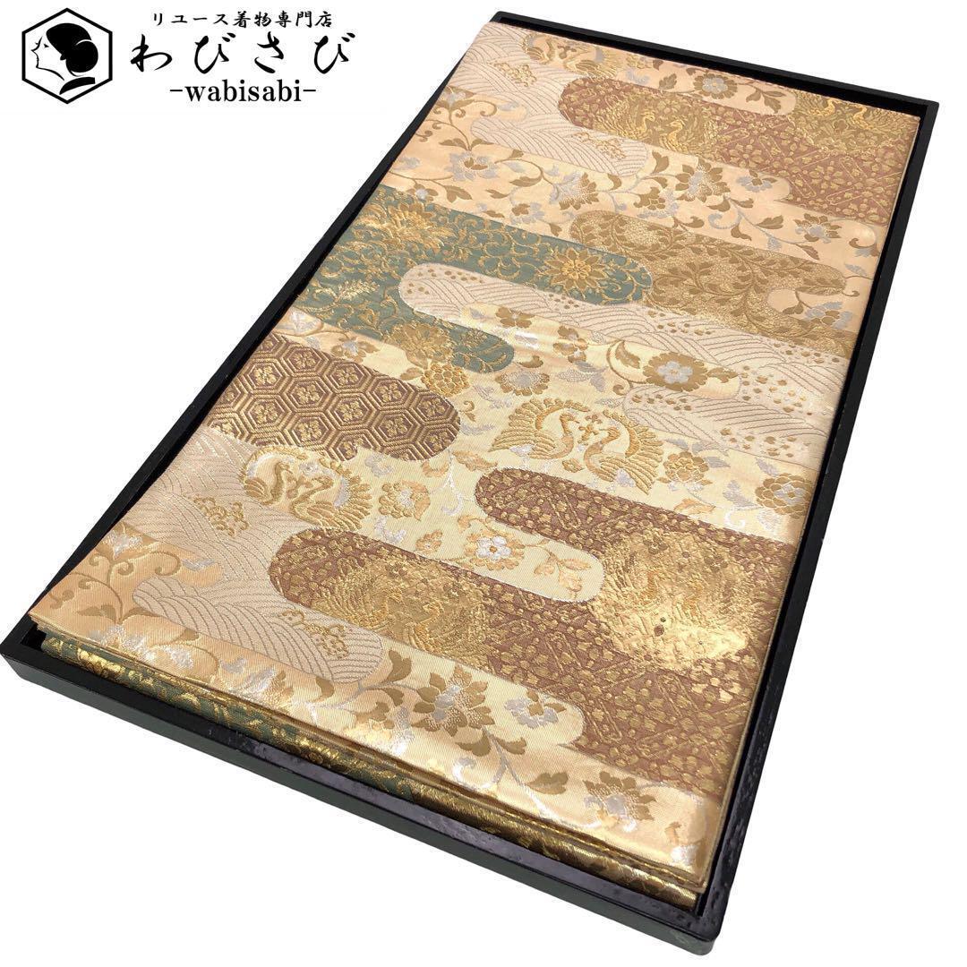 > 袋帯 霞模様 花唐草 双鳥鳥柄 金色 金銀糸 フォーマル O-4466 着物 きもの kimono 和服 和装 中古 リサイクル着物 【送料無料】