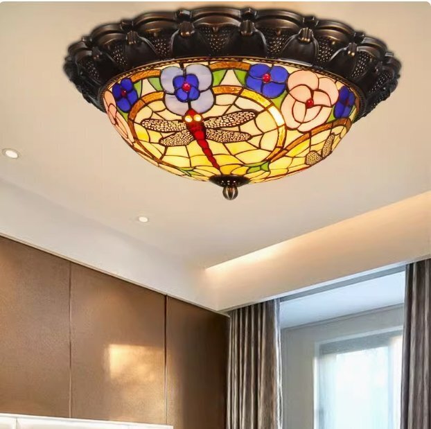 - 極上品★新品★別荘ステンドランプ シーリングライト ステンドグラス アンティーク 花柄レトロな雰囲気がおしゃれ ティファニー技法 照明