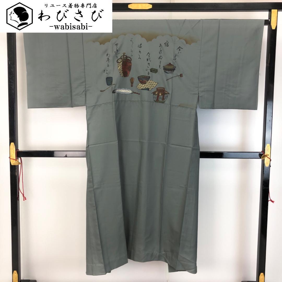 - 男襦袢 長襦袢 男物 単衣 文字柄 羽 深川鼠色 U-1513 着物 きもの kimono 和服 和装 中古 リサイクル着物 【送料無料】