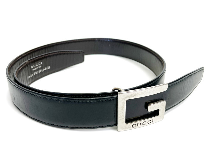 > GUCCI グッチ ベルト 037・1046・2959 表記サイズ70/28 Gロゴ Gバックル シルバー ブラック×ダークブラウン シルバー金具 レザー 装飾品