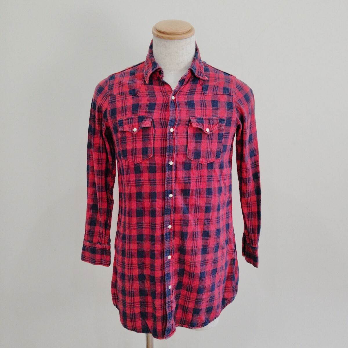 - 198/M/D.M.G メンズ シャツ 長袖 チェック柄 スナップボタン 綿100 日本製 赤