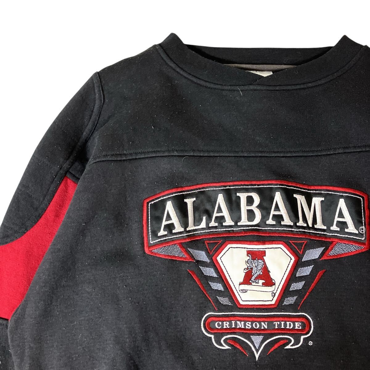 - カレッジスウェット 00s 刺繍ロゴ L スウェット トレーナー 黒ブラック ボルドー エルボーパッチ 古着
