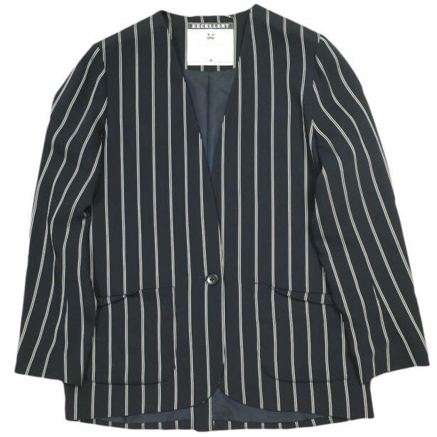 - JOURNAL STANDARD L'ESSAGE ジャーナルスタンダード 日本製 ストライプノーカラージャケット ドッレープダブルクロスジャケット NAVY/WHITE
