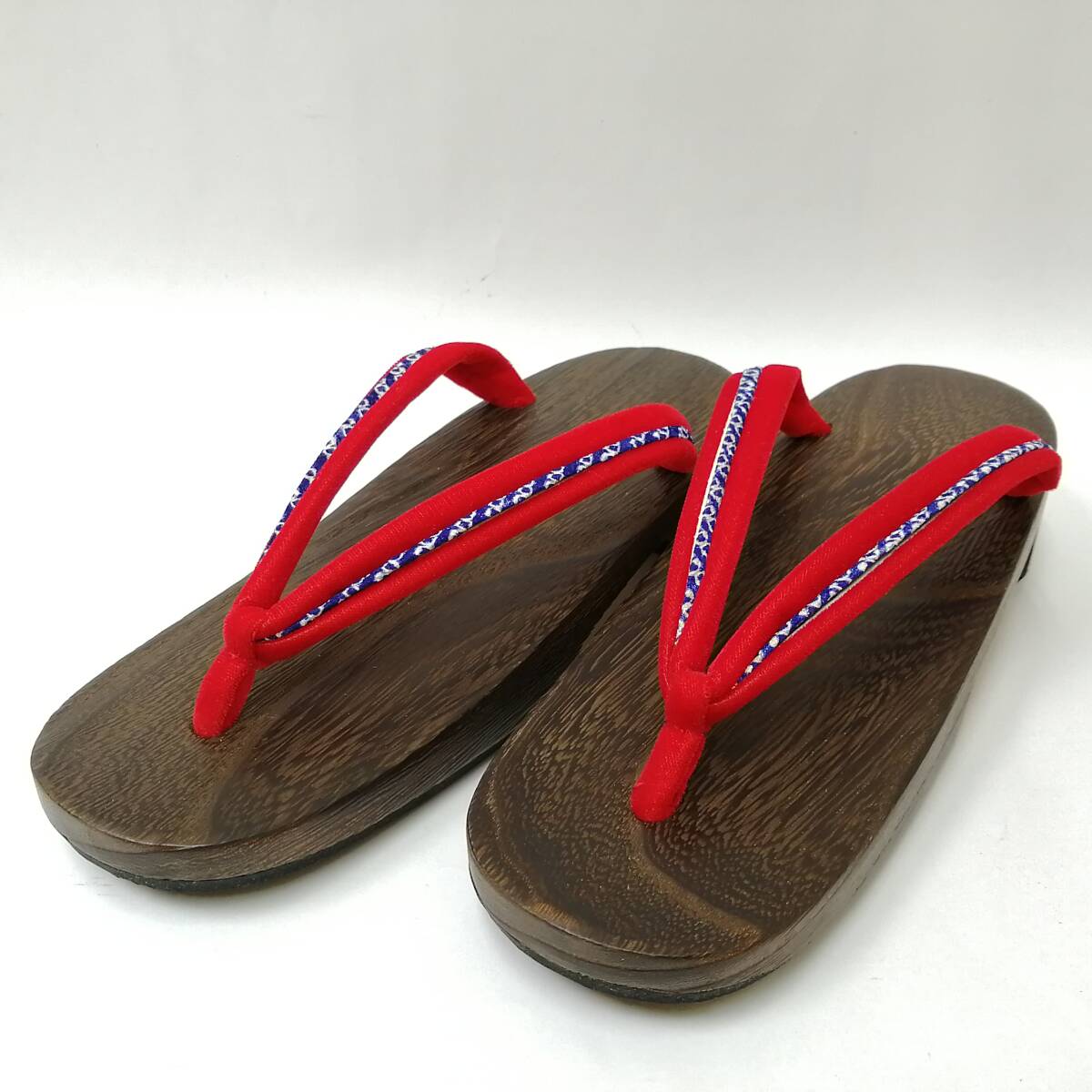 - ◎25092511 【未使用】 下駄 赤×青の鼻緒 女性 着物 和装 浴衣 和小物 小判型 カジュアル 全長約23cm