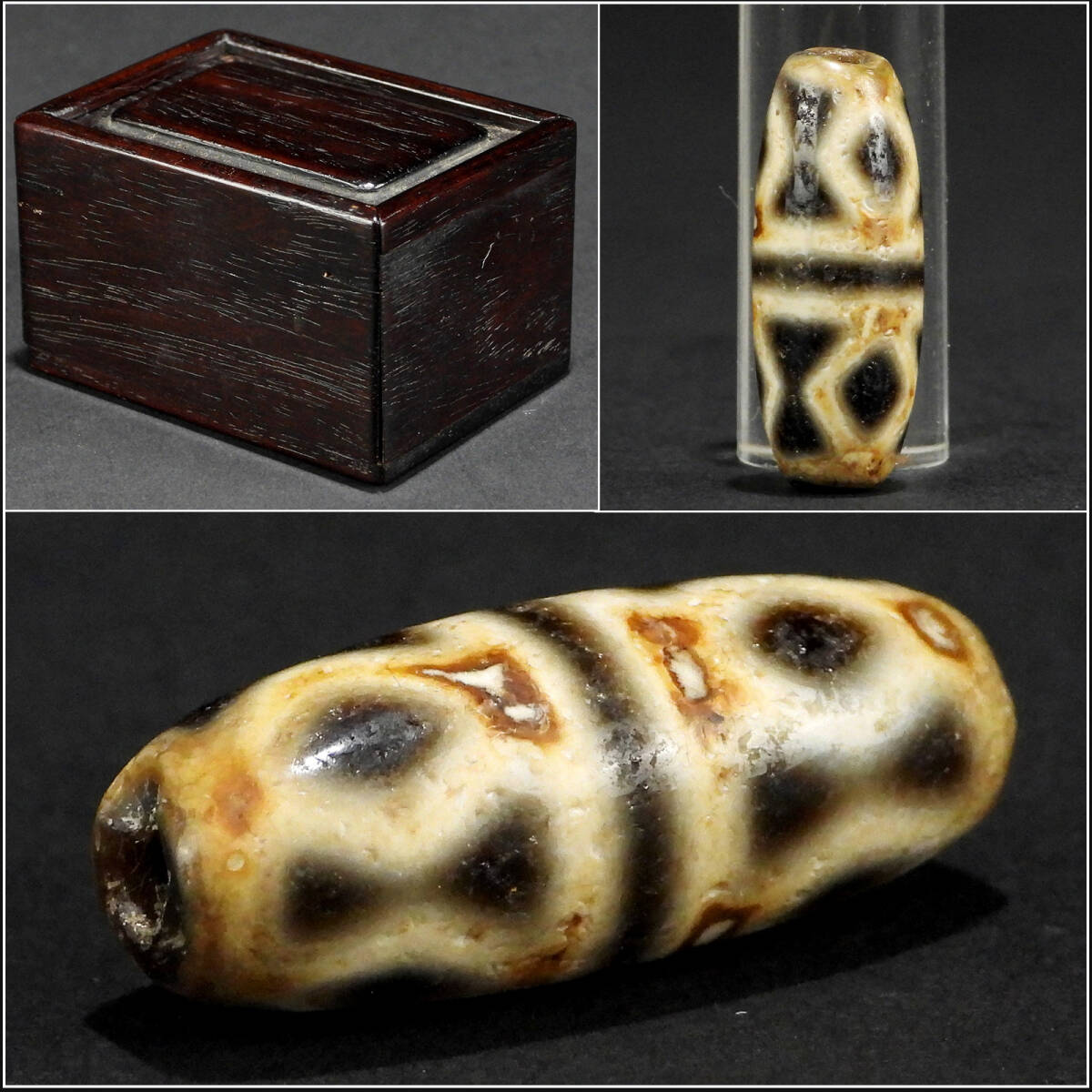 - 【騰立】古美術 時代 古天珠 唐木紫檀箱 収納 古瑪瑙 古玉石 古道具 骨董 提物 根付■W128/65