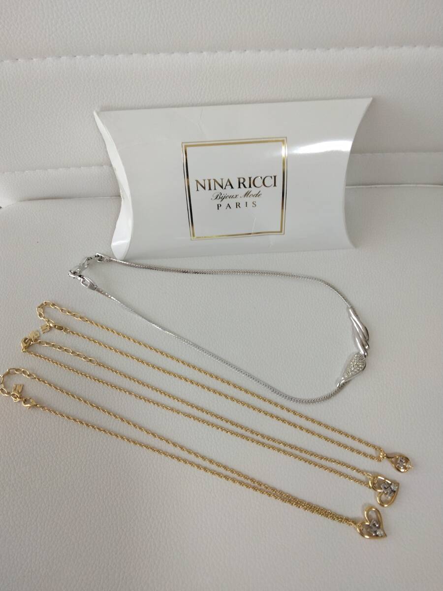 > NINA RICCI ニナリッチ NR ネックレス ペンダント ハート ラインストーン シルバー・ゴールド色 4点★I3286