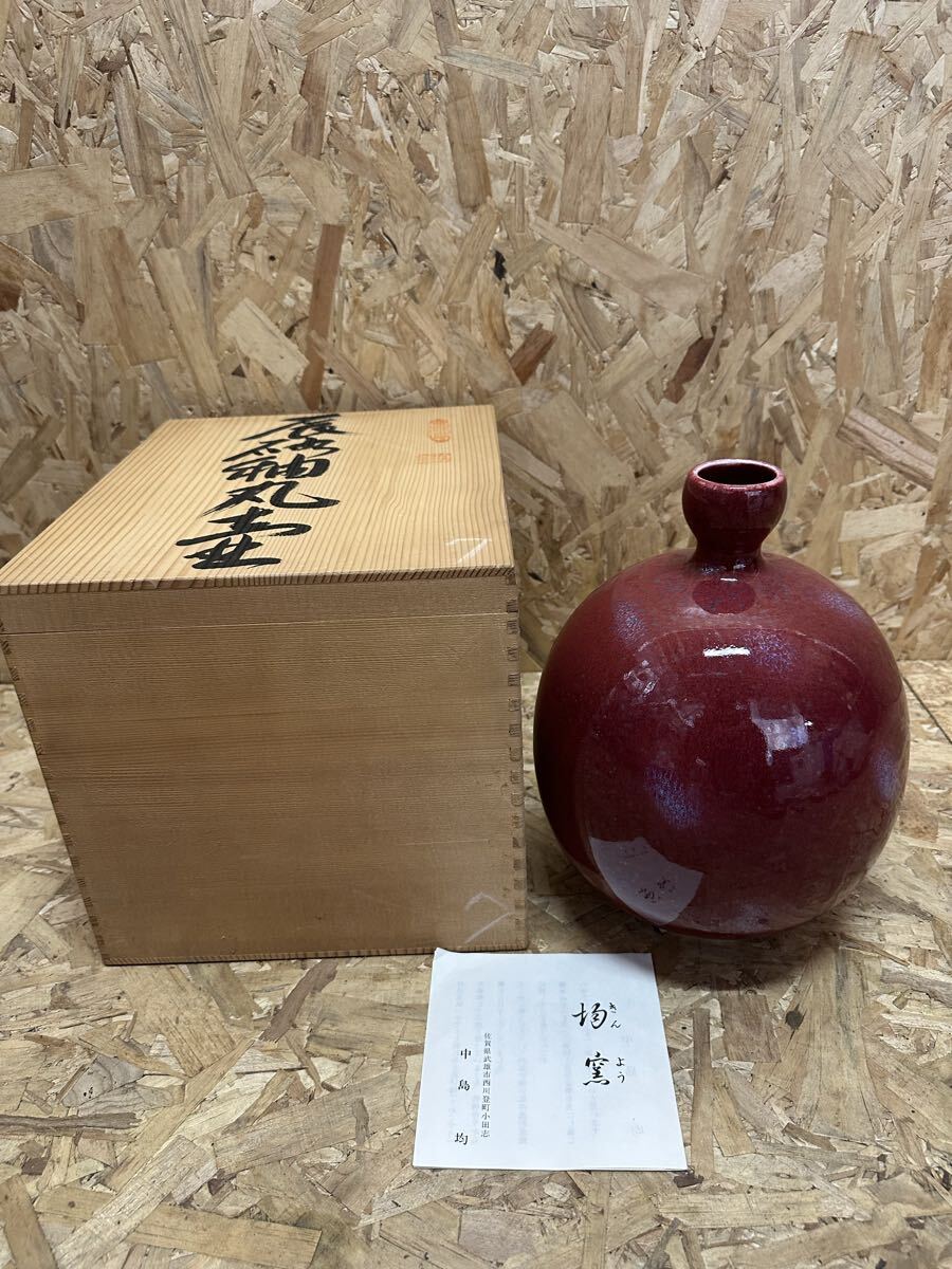 - 均窯 中島均 辰砂釉丸壷 置物 壺 花瓶 陶磁器 焼物