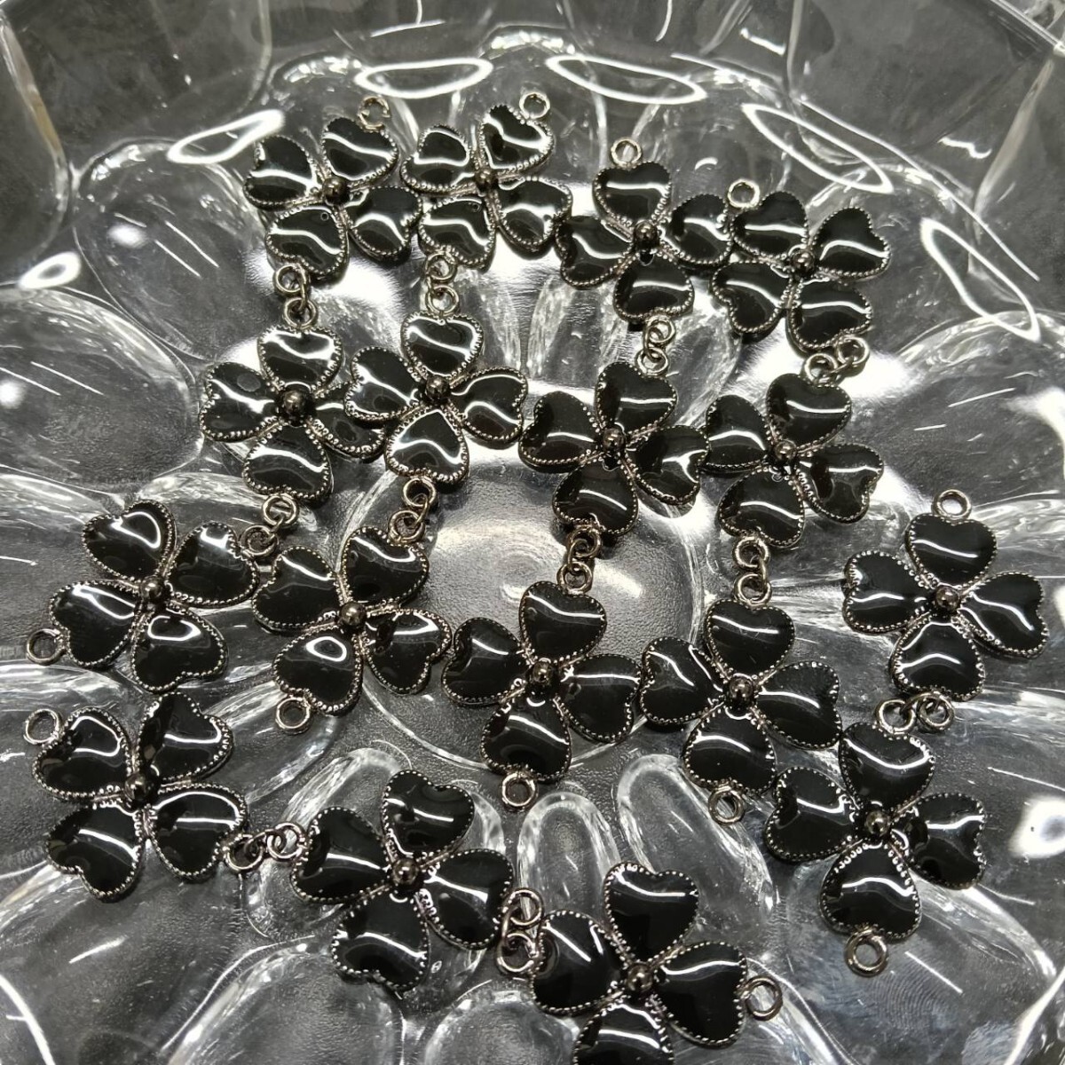 - L330☆未使用 大量 花 フラワー パーツ 39g 20mm ブラック 黒 大粒 金具 チャーム ヴィンテージ ハンドメイド アクセ 資材 B-490