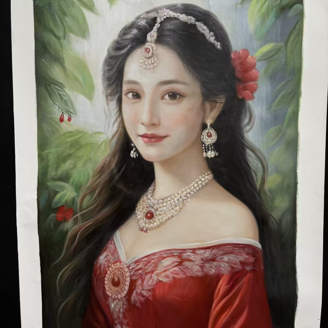 - 油彩 絵画 早期收集 y6 『 寒軍 美女 美人画』手描き布油絵 油畫 旧藏 中国古画 純手描き画 古美術品 時代物 中国古玩 骨董品 925