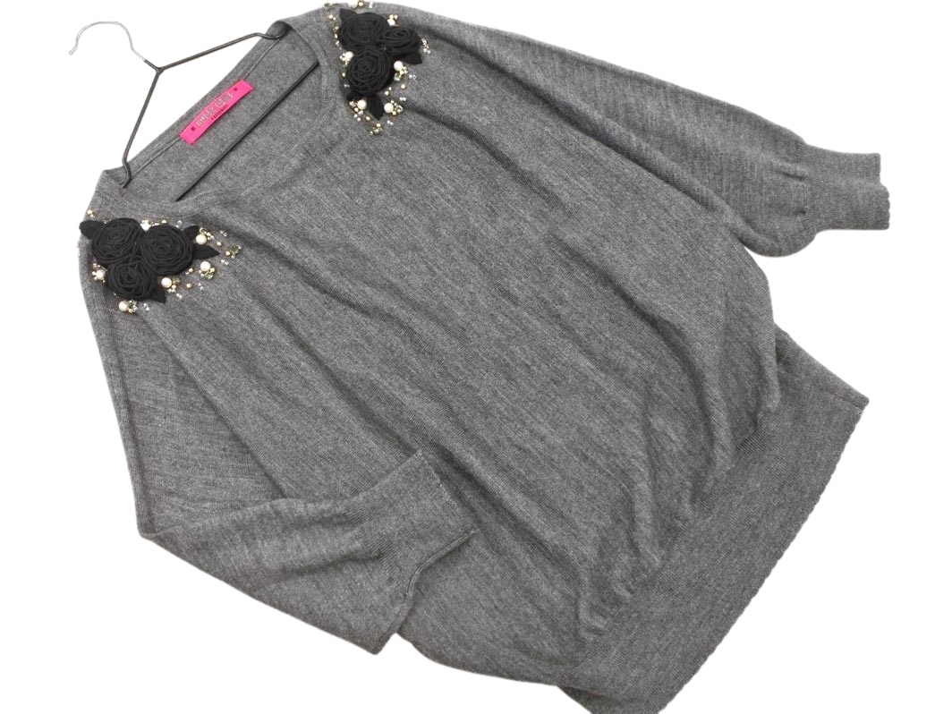 > アナスイ DOLLY GIRL BY ドーリーガール バイ ウール混 花 モチーフ ドルマン ニット セーター size2/グレー ◇■ ☆ fic6 レディース