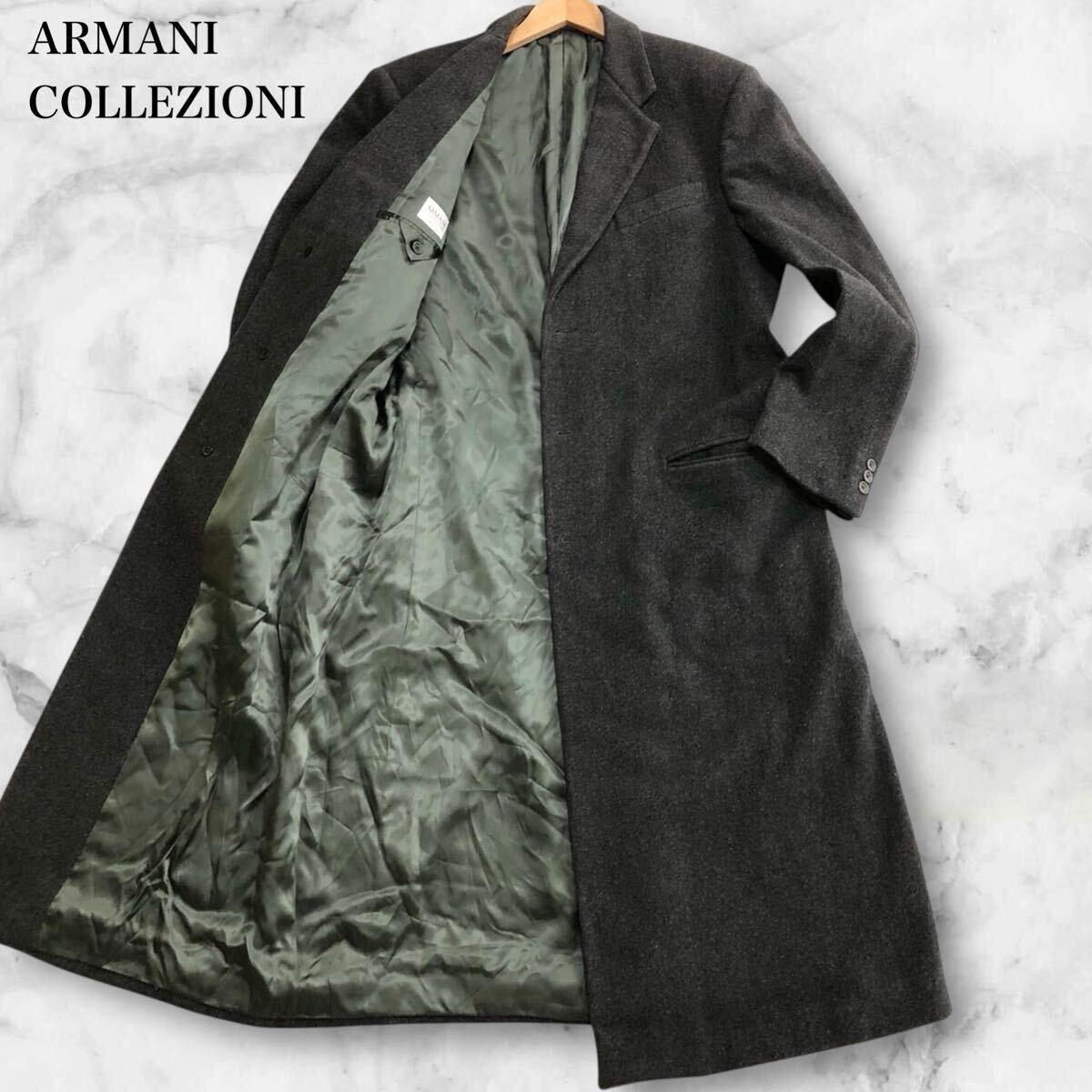 > 極美品/L相当●ARMANI COLLEZIONI アルマーニ コレツィオーニ ウール チェスターコート マキシ丈 ロング チャコールグレー メンズ 48