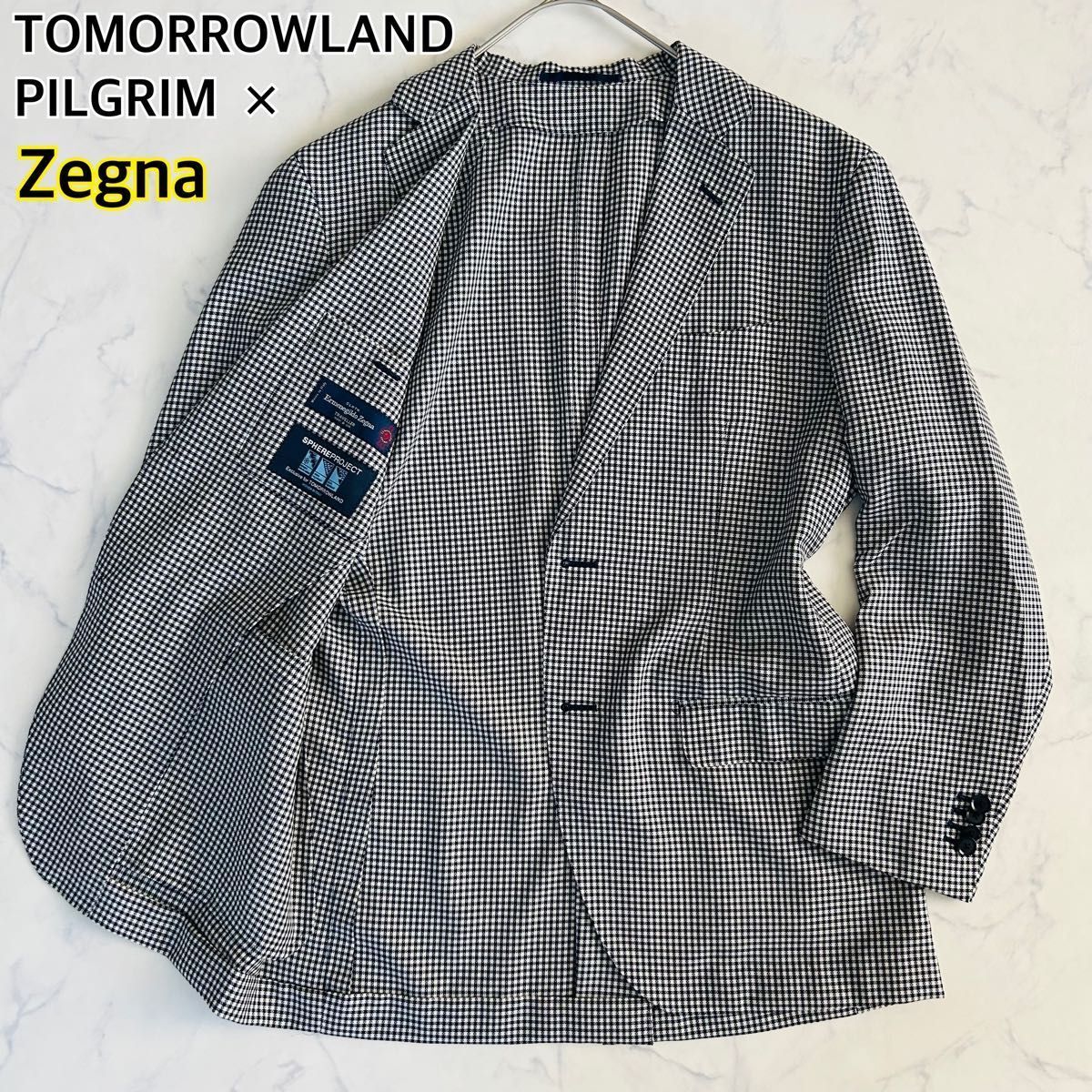 - 【美品】高級イタリア生地ゼニア L シルク混 TOMORROW LANDO× Zegnaトュモローランド×ゼニア テーラードジャケット ギンガムチェック