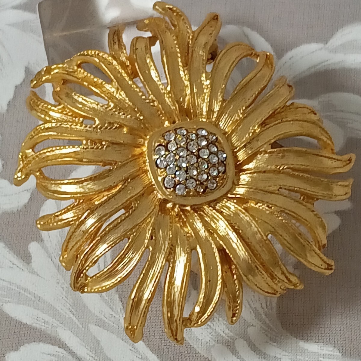 - ゴールドカラー ラインストーン フラワーモチーフ ブローチ 美品