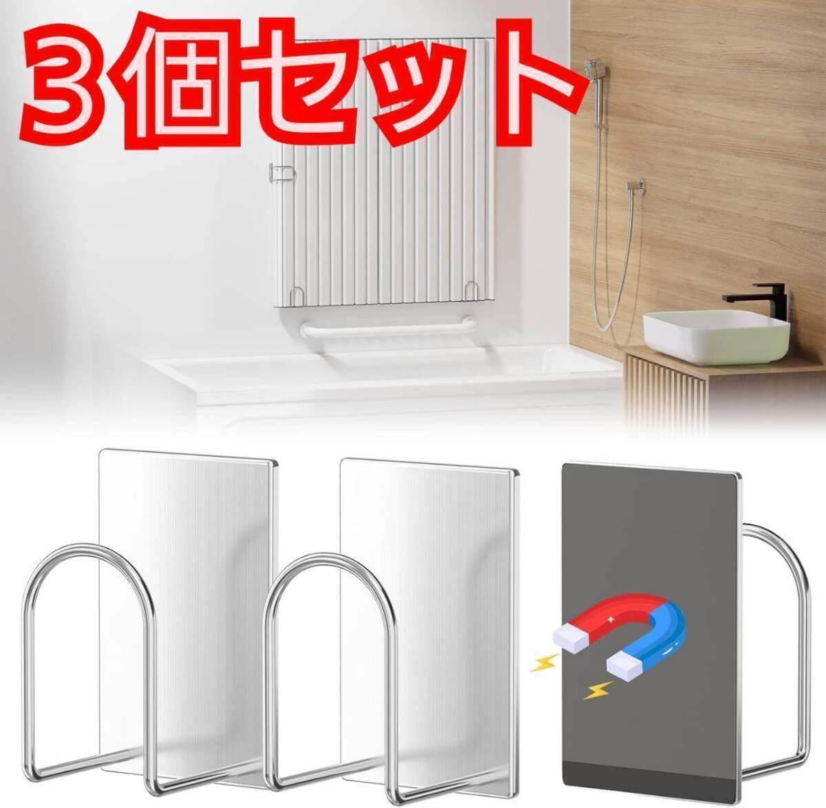 - 送料無料 風呂ふたホルダー 3個セット マグネット 風呂蓋ホルダー ステンレス製 フック 錆びにくい お風呂の蓋 スタンド 穴あけ不要 新品