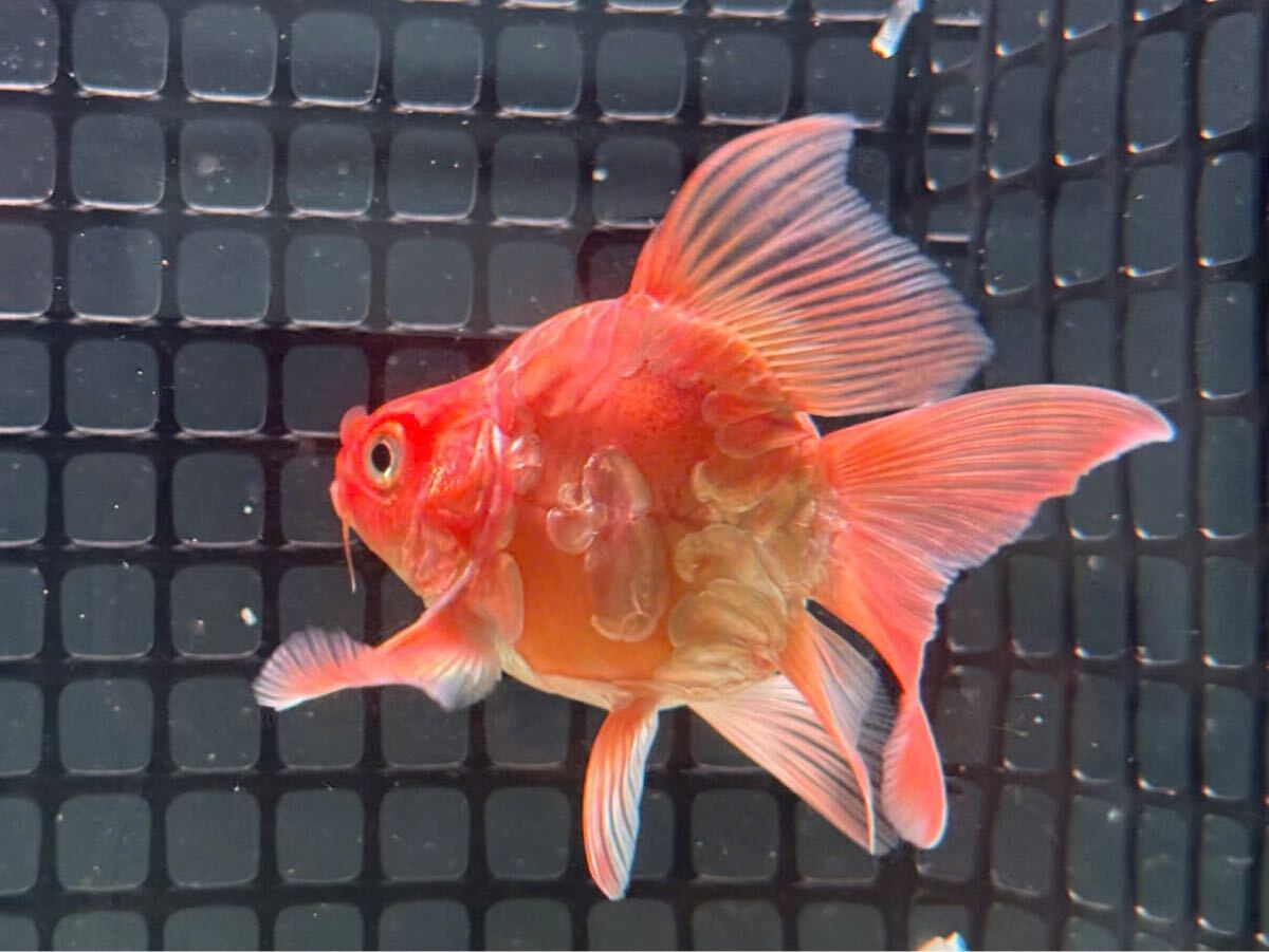 - 赤橙色の錦鯉で、龍鱗を持つショートボディの超レア個体 14cm