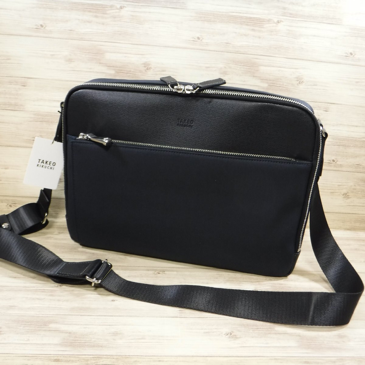 - BB674 タケオキクチ 定価2万4200円 新品 A4サイズ ショルダーバッグ 超撥水テフロン加工 軽量 PC収納ビジネス対応 735122 紺 TAKEO KIKUCHI