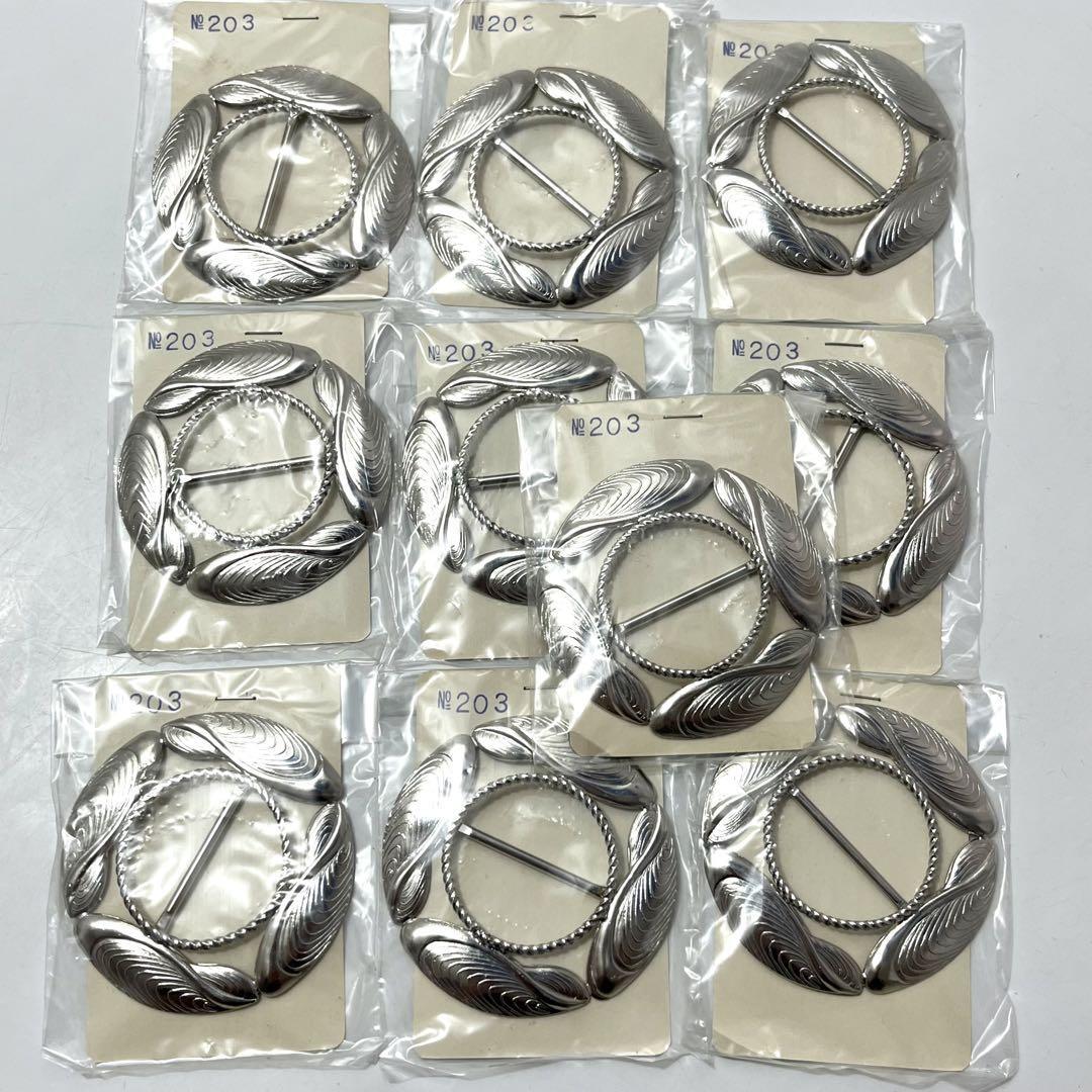 - ば20【希少まとめ売り】アンティーク シルバーバックル 10個セット 金属パーツ ◇バッグ修理・ベルトリメイク 丸型葉っぱモチーフ