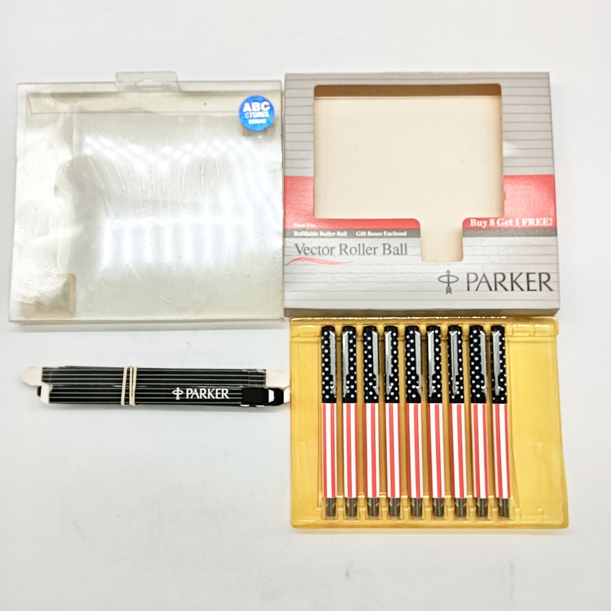 > 【A4076】未使用品 PARKER パーカー VECTOR ROLLER BALL ボールペン 星条旗 9本セット 筆記用具 文房具 筆記可
