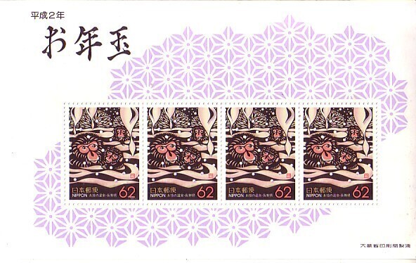 - 「お年玉切手 平成2年度 お猿の温泉・長野県」の記念切手です