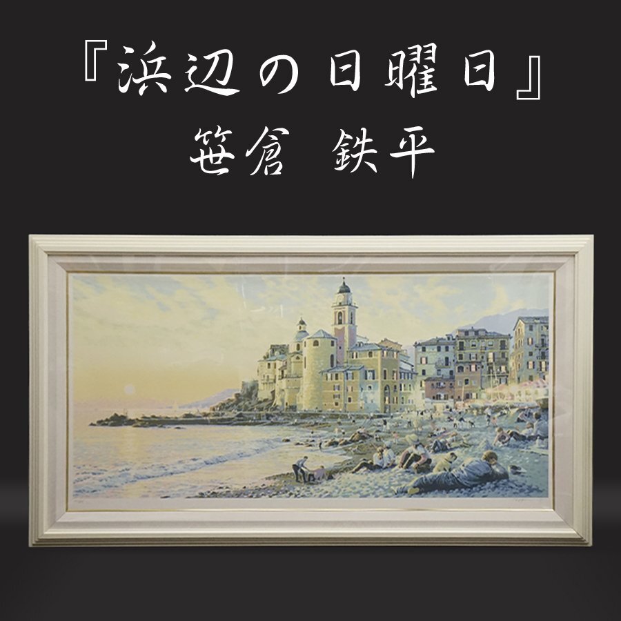 - 笹倉鉄平『浜辺の日曜日』201/285 シルクスクリーン 大判 大型作品 肉筆サイン 絵画 額装 美術 アート 古美術品 真作保証品