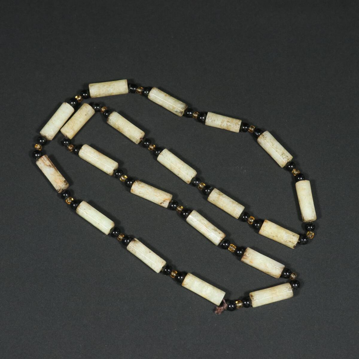 - 9+GV9758「東洋美術」 人間国宝 和田玉 極細工 古置物 中国古美術 【漢代和田玉(20個、銘:剛毛)の鎖】 旧物 珍品 収蔵価値が高い