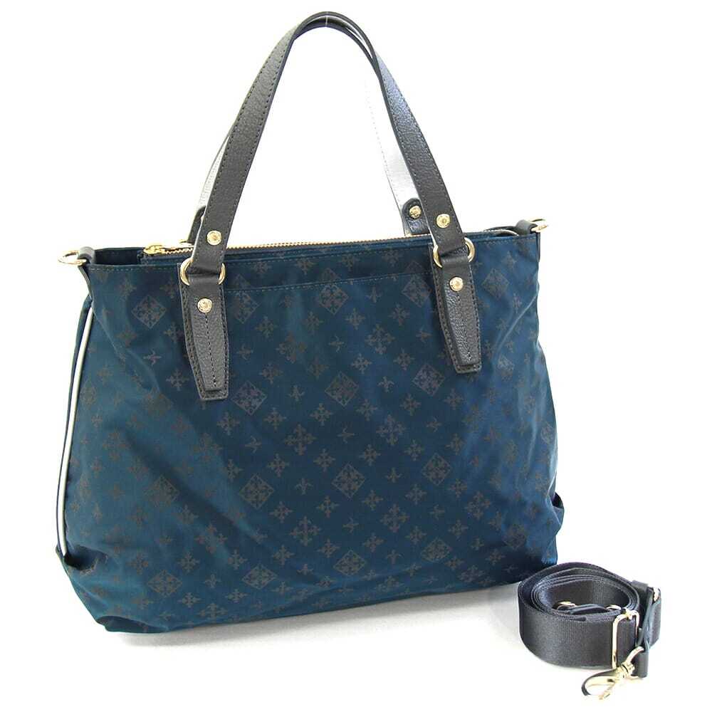 - ラシット 2WAYハンドバッグ ネイビー ダークグレー/シルバー ナイロン レザー 中古 ショルダーバッグ クロスボディ