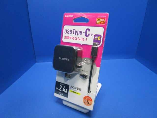 > ELECOM エレコム AC充電器 12W 2.4A Type-C ケーブル 一体型 1.5m ブラック ケーブルクリップ付属 MPA-ACC20BK