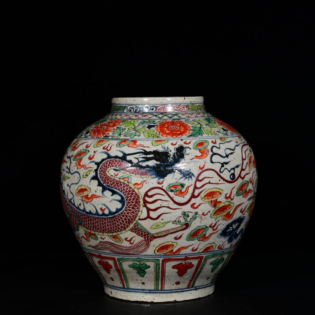 - 9+GV9770「東洋美術」 中国骨董 人間国宝 磁器製品【元代五彩絲龍文壺】 旧物 孤品 珍品 陶磁器 収蔵価値が高い