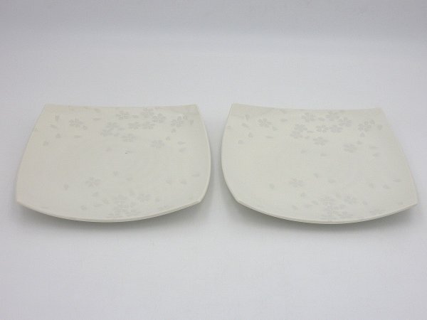 - ◆◇白夢桜 角大皿×2個 / 桜柄 花柄 角皿 平皿 プレート 白いお皿 磁器 日本製 美濃焼 業務用 和洋食器 飲食店 陶器 / 未使用 訳あり◇◆