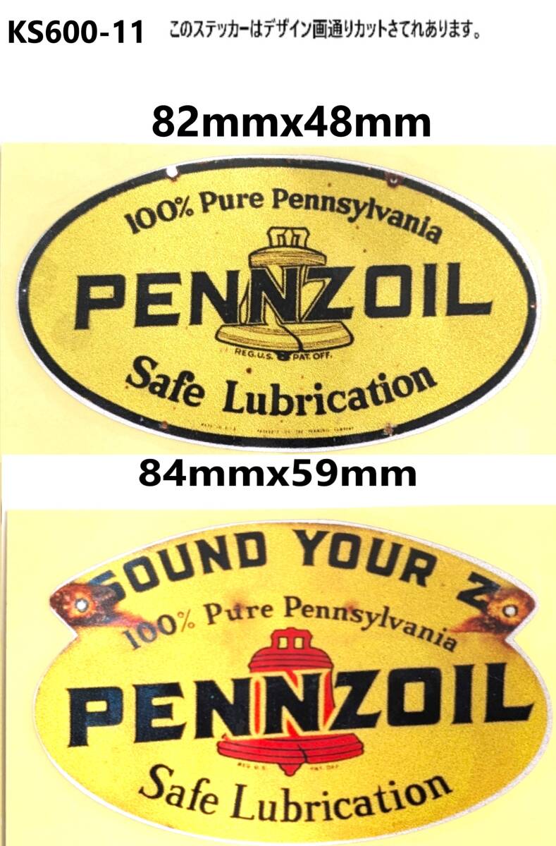 - 2枚 特価 KS600-11 美品 キラキラ PENNZOIL ゴールド 楕円 ヴィンテージ ガソリンステッカー モーターオイルステッカー レトロ ガレージ