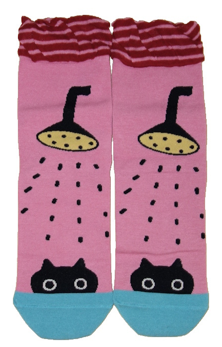 > マタノアツコ/ATSUKO MATANO★ワコール★ソックス/靴下★Mサイズ(22~24cm)★黒猫のMEMEちゃんシャワー中★PI★俣野温子★日本製子★日本製