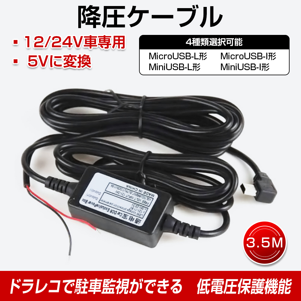 - ドライブレコーダー 常時電源ケーブル 車 ドラレコ 降圧ケーブル 電源ケーブル MicroUSB マイクロUSB MiniUSB