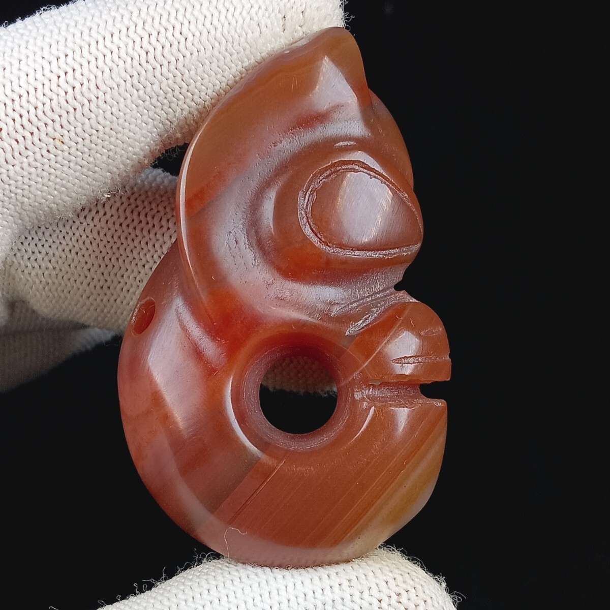 - ★24時間以内発送★骨董品 天然石 赤瑪瑙 手彫 紅山文化 玉豚龍 根付