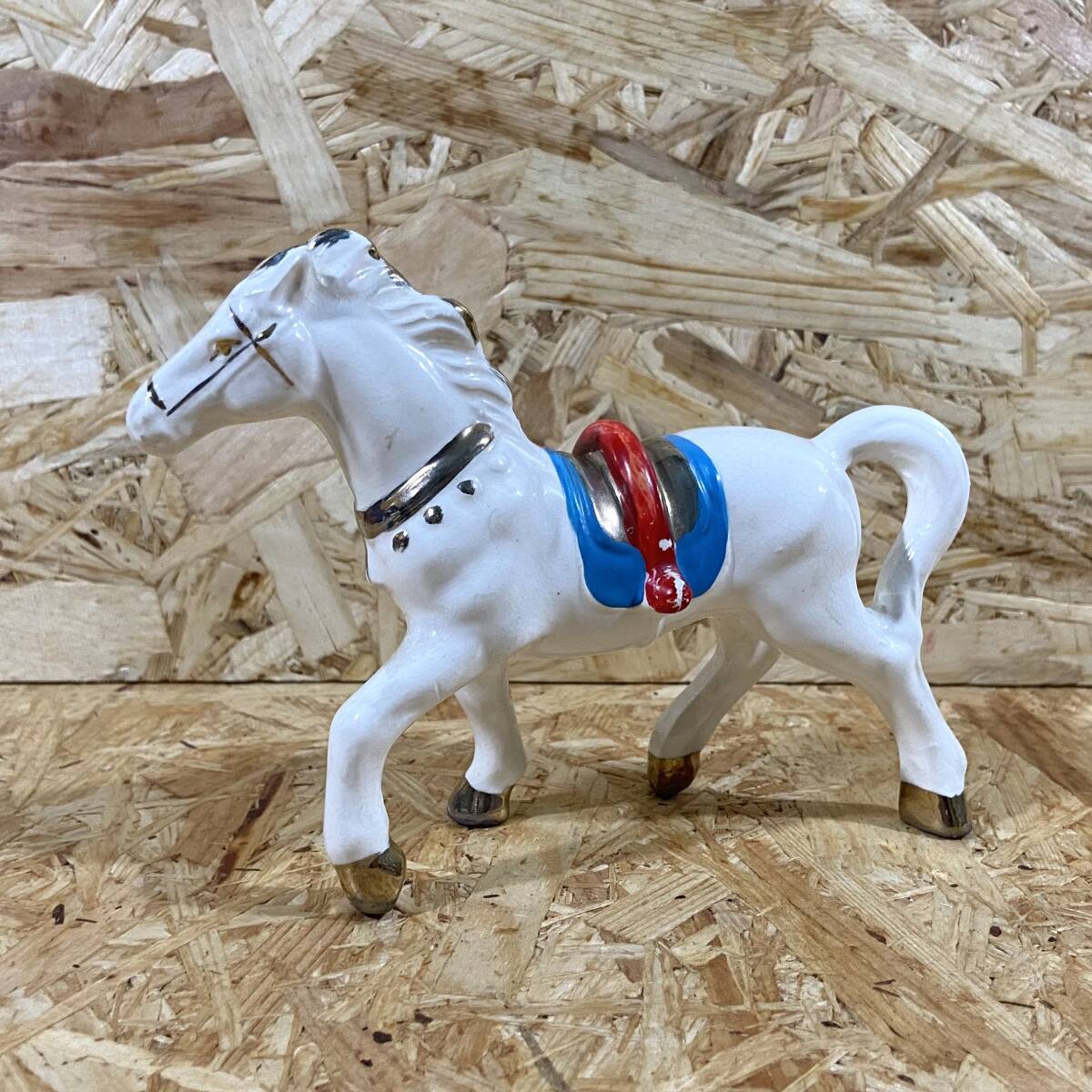 - 昭和レトロ 陶器製 馬の置物 白馬 金彩 彩色 欠けあり