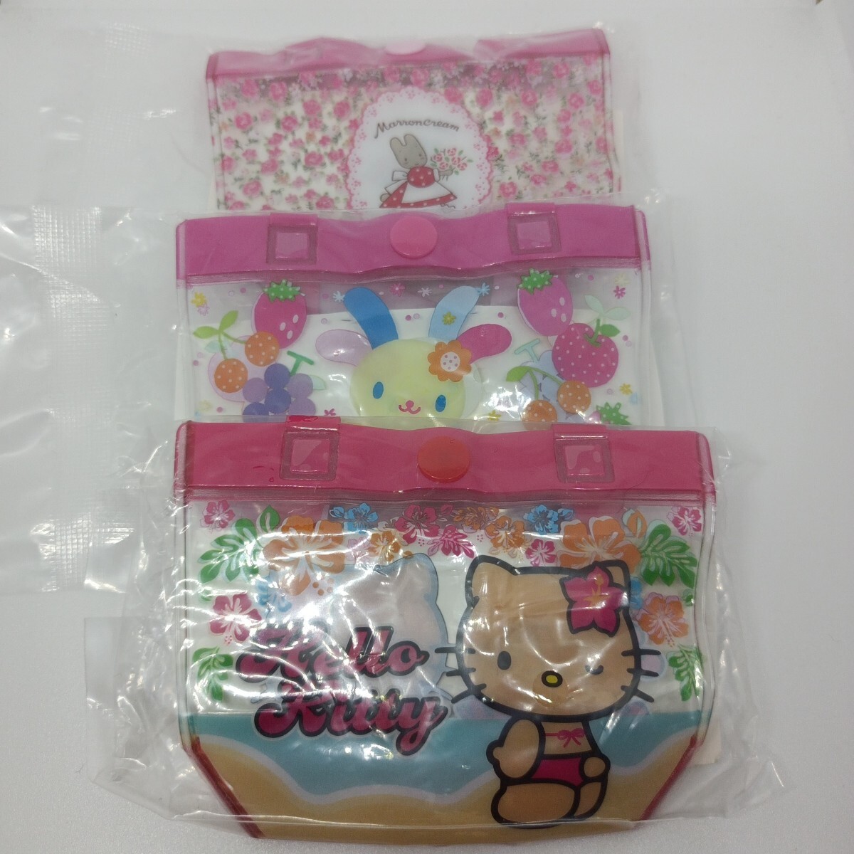 > サンリオキャラクターズ プールバッグ風ミニポーチ2 日焼けキティ ウサハナ マロンクリーム 3個セット ガチャ