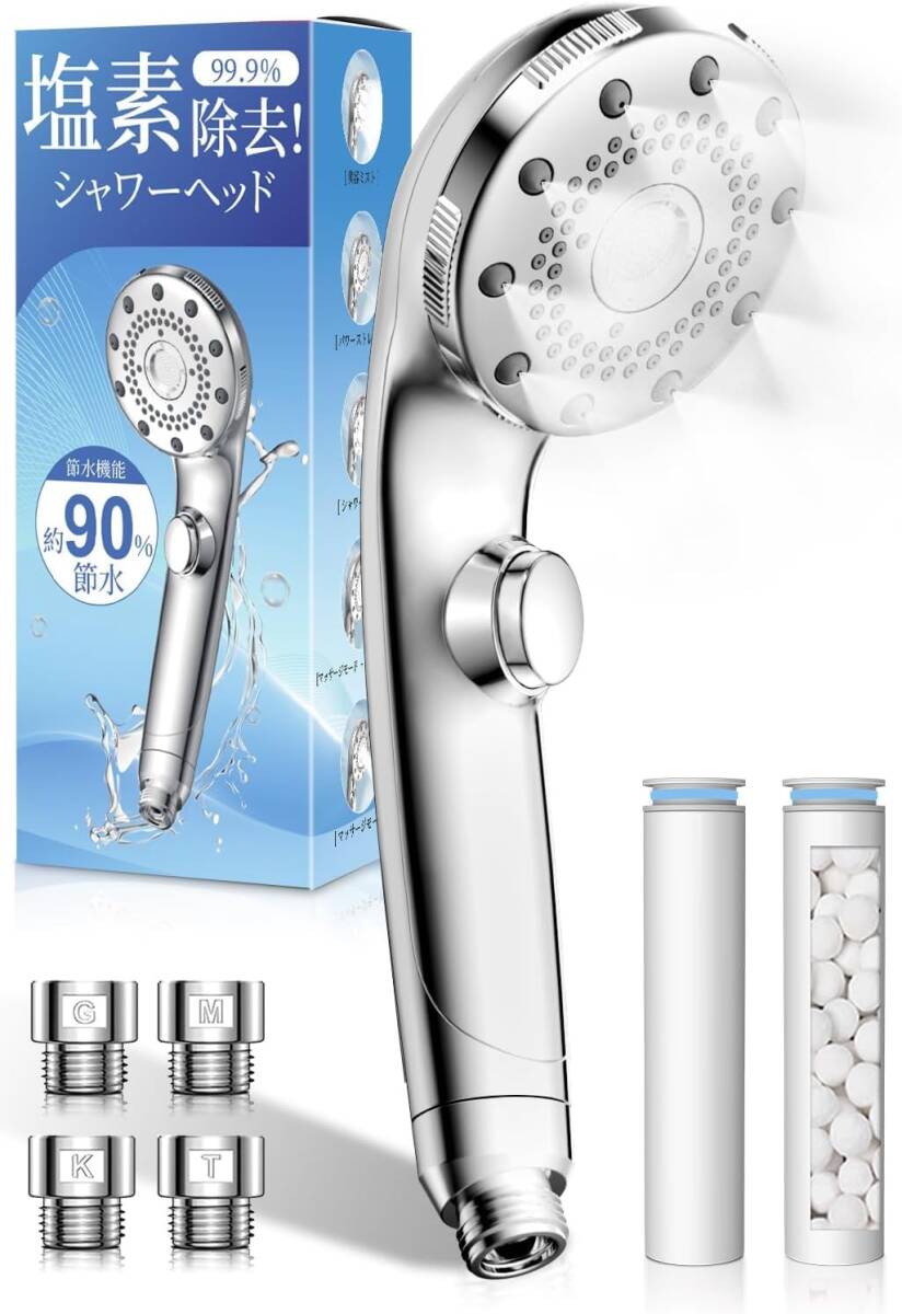 - シャワーヘッド マイクロナノバブル 【90%節水・99.9%塩素除去】手元止水 5段階モード (塩素除去, ポリッシュ銀)