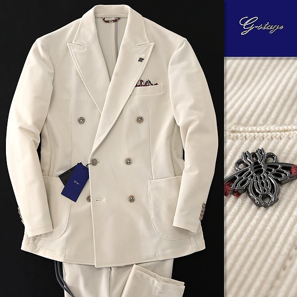 - 新品 ジーステージ トリコット ニット コーデュロイ ダブル スーツ 48(L) 白系 【J51366】 秋冬 G-stage ストレッチ ジャケット パンツ