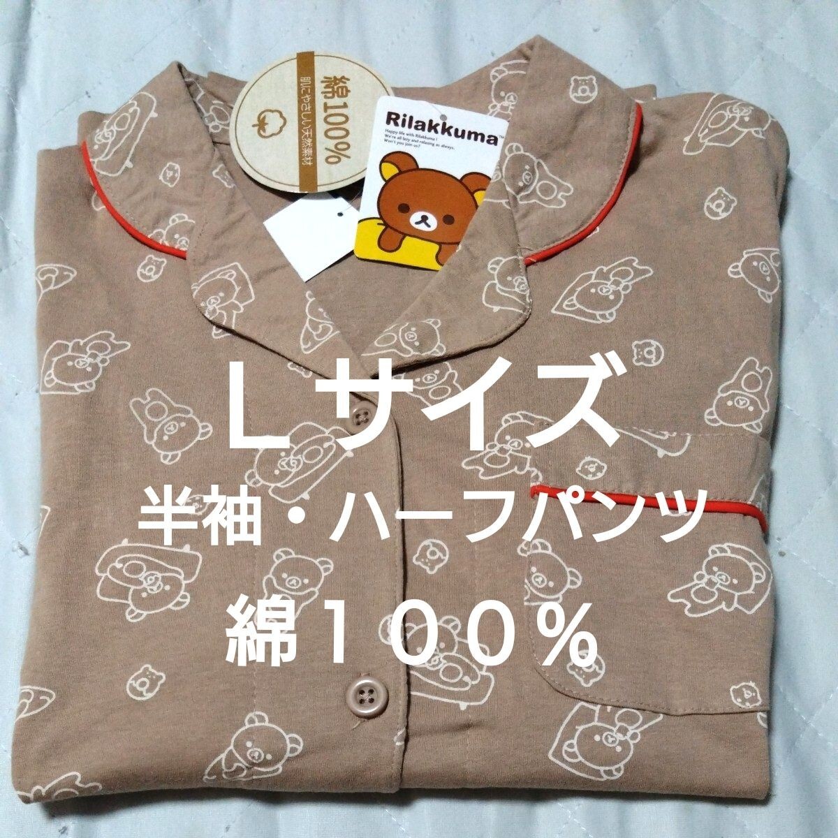 - ②リラックマ レディース パジャマ ルームウェア Lサイズ 半袖 ハーフパンツ ポケットなし 上下 セット