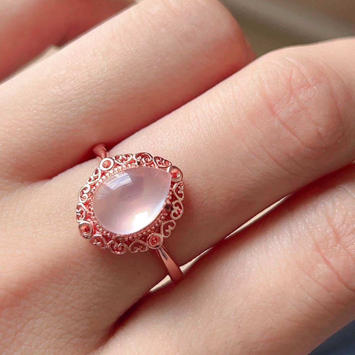 > ◇希少◇スター入り◇ローズクォーツ(紅水晶)指輪◇リング◇フリーサイズ◇天然石◇パワーストーン◇巾着袋付き◇プレゼントにも 034R9289