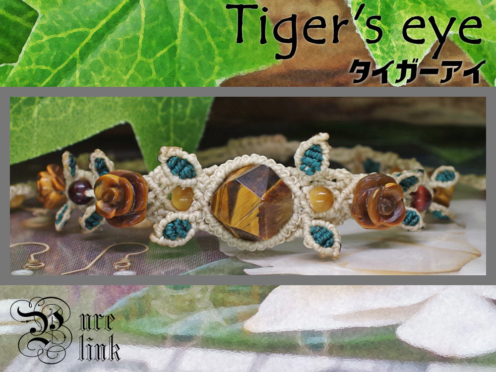 - 金色の神眼『タイガーアイ』薔薇彫り生命の樹マクラメ編ブレスレット