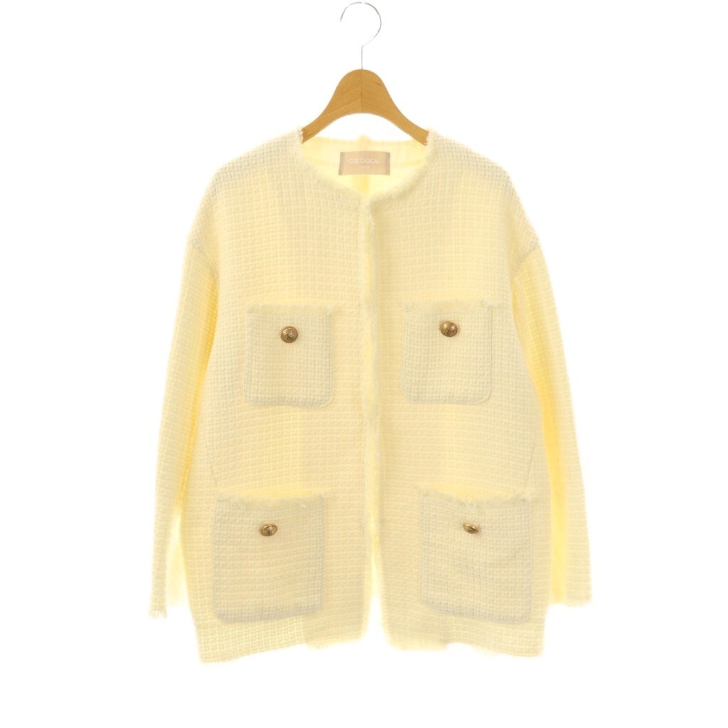 - ココディール COCO DEAL Luxe フリンジツイードジャケット ノーカラージャケット 1 オフホワイト /DF ■OS レディース