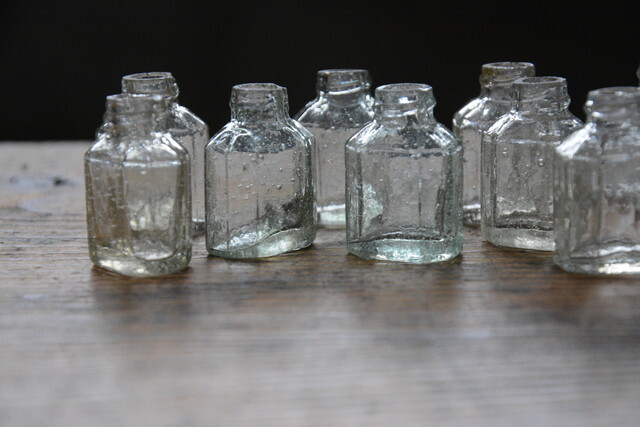 - NO.304 古い小さなガラス瓶 10個SET 未使用品 検索用語→A昭和レトロアンティークヴィンテージ古道具ゆらゆら硝子ガラスビン小瓶気泡