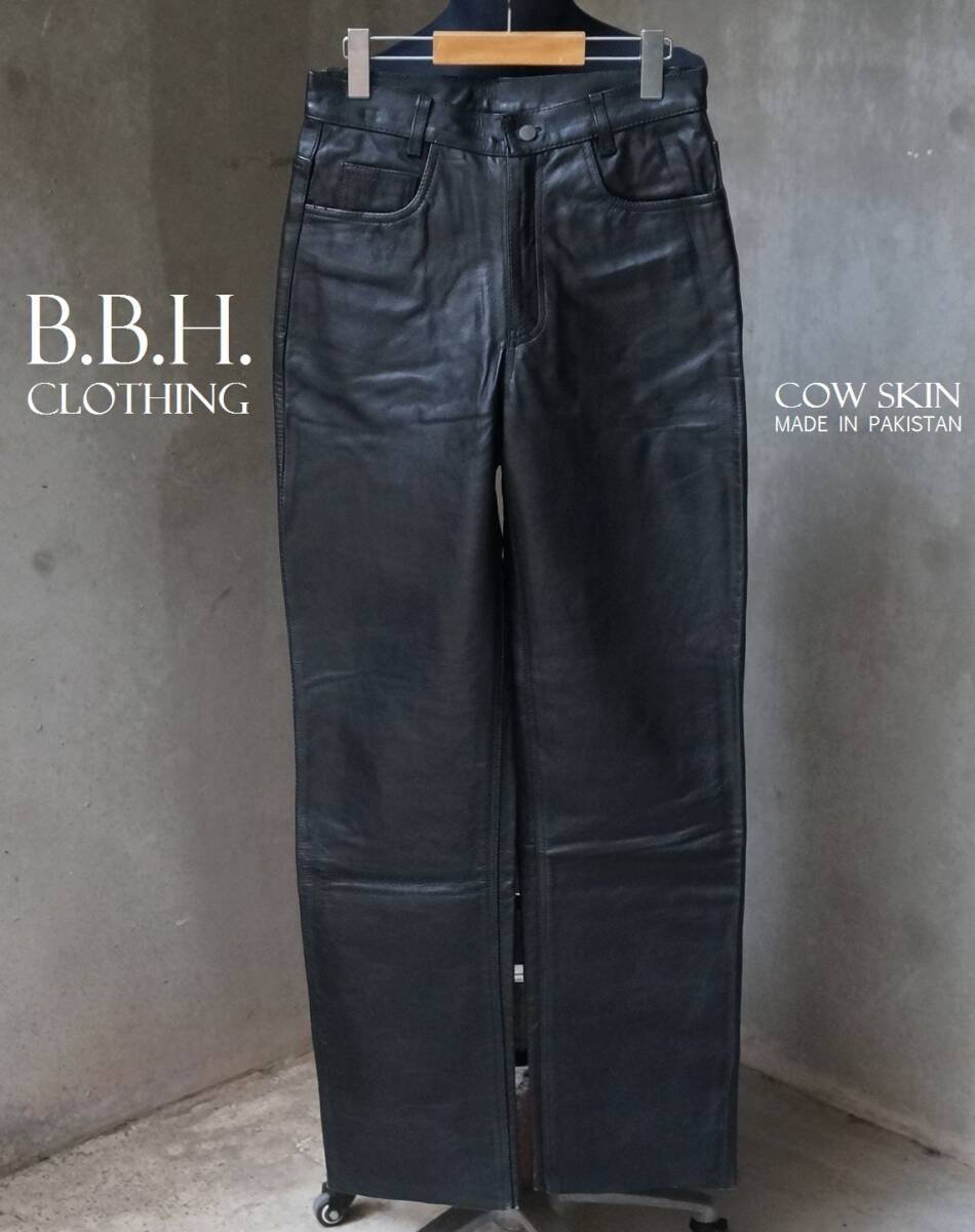 - 未使用 パキスタン製 ビービーエイチクロッシング B.B.H.CLOTHING 黒革 カウスキン ブラックレザー ロングパンツ バイカ―パンツ 30 W76
