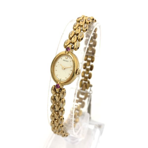 > Z1187〇 1円~! SEIKO セイコー 1E20-6140 ブレスウォッチ オーバル 石付 クォーツ アイボリー文字盤 レディース 腕時計 稼働 動作確認済