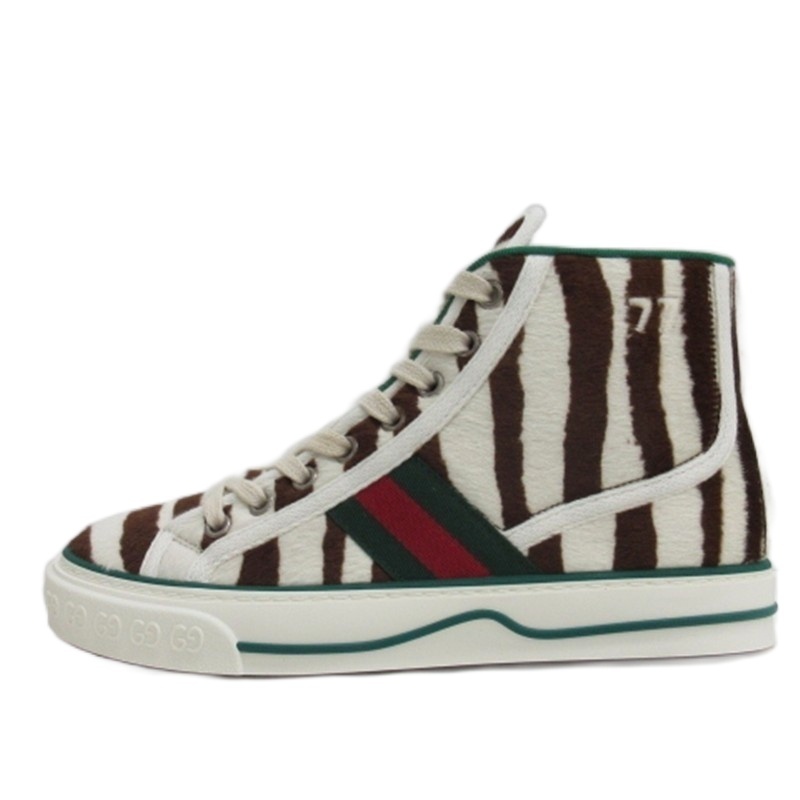 > グッチ GUCCI テニス 1977 ゼブラハラコ ハイカット スニーカー 627839 35.5 22.5cm ■GY51 レディース
